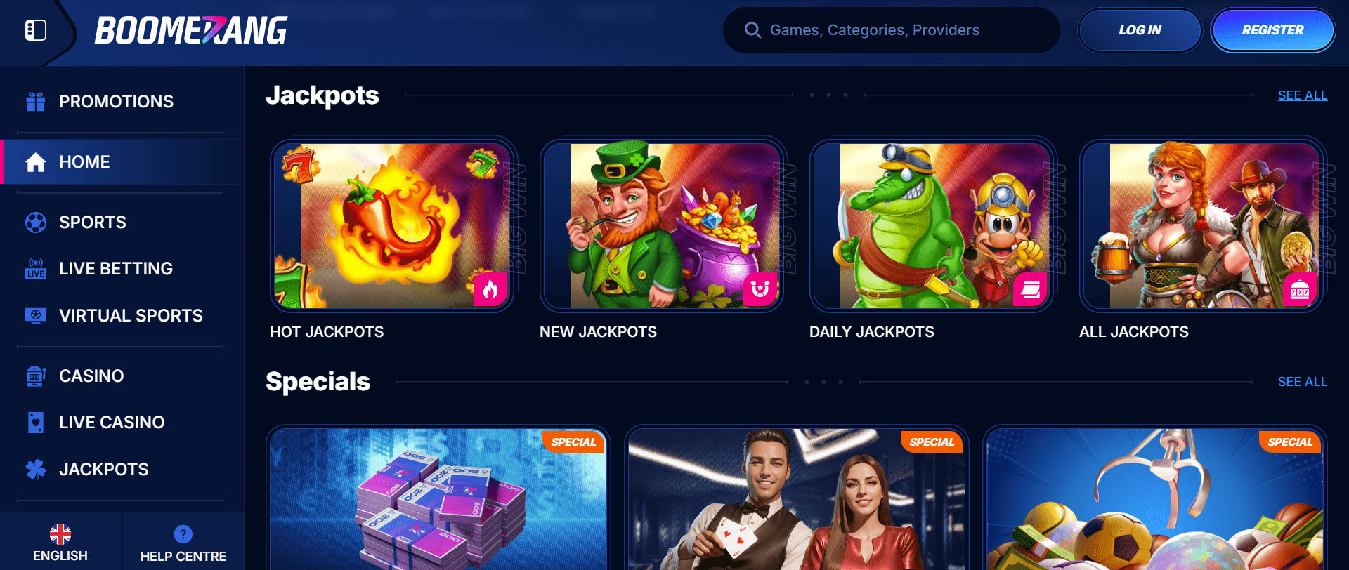 Englisch, Spanisch, Deutsch und Portugiesisch werden im BoomerangBet Casino unterstützt.
