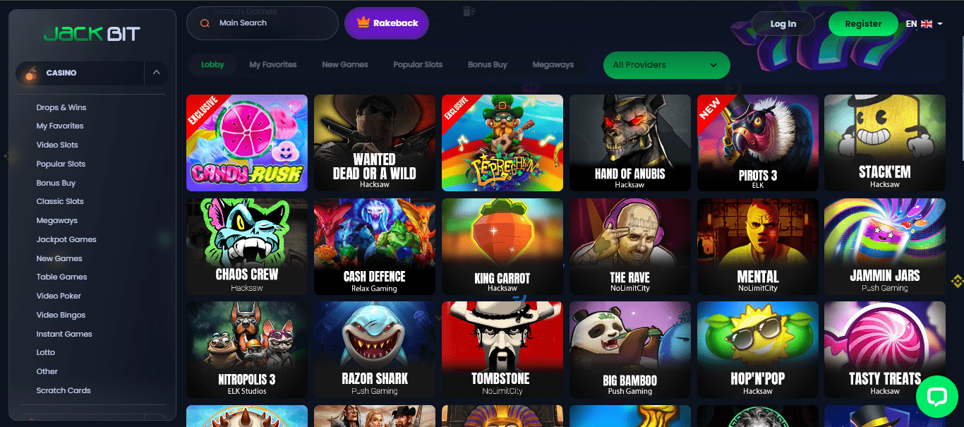 Yksi vuoden 2022 uusimmista, täysin kryptovaluuttakeskeisistä kasinoista on JackBit, joka yhdistää taitavasti laajan vedonlyöntialueen valtavaan pelikirjastoon, jossa on yli 6800 peliä. Sitä johtaa Ryker BV, yritys, jolla on lupa toimia Curacaolla ja joka omistaa ja operoi myös muutamia muita brändejä, kuten FreshBet ja 20Bet, jotka olemme jo arvioineet. Sen verkkosivuilla on kryptovaluuttakasinoiden vakioulkomuoto – musta tausta interaktiivisella suunnittelulla, joka keskittyy pelialueisiin ja sisältää tunnetuimpien kryptovaluuttojen neonlogot.